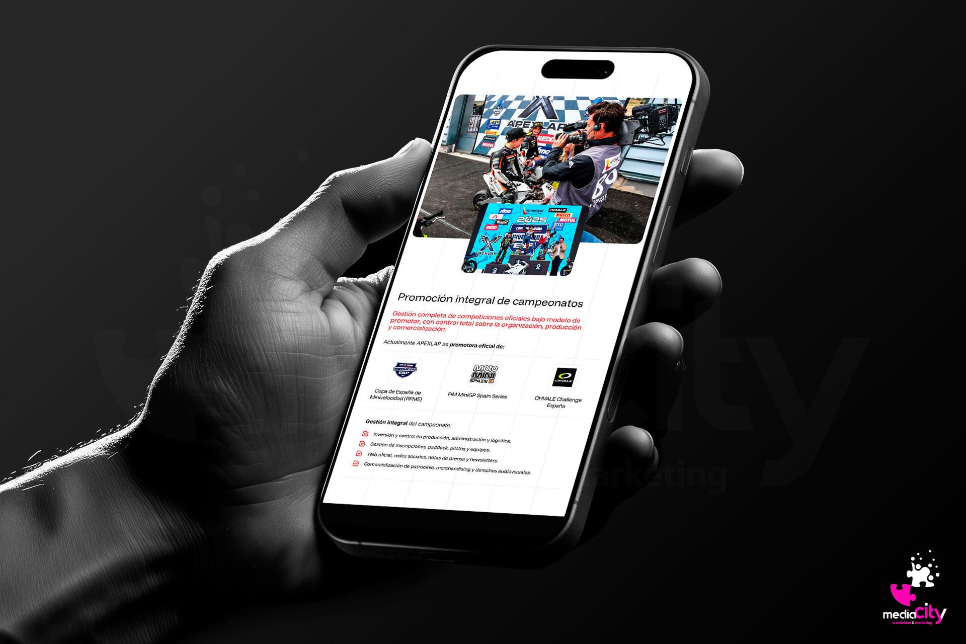 Gracias a su enfoque profesional y multidisciplinar, APEXLAP impulsa campeonatos oficiales como la Copa de España de Minivelocidad, la FIM MiniGP Spain Series y el OHVALE Challenge España, generando oportunidades para talento emergente y ofreciendo una plataforma de visibilidad a pilotos, sponsors y equipos. Su trabajo demuestra cómo la combinación de organización deportiva, producción audiovisual y gestión digital puede transformar el motorsport base en espectáculo global.